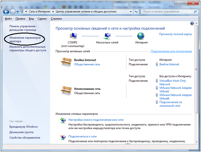 После этого откроется окно «Центр управления сетями и общим доступом»