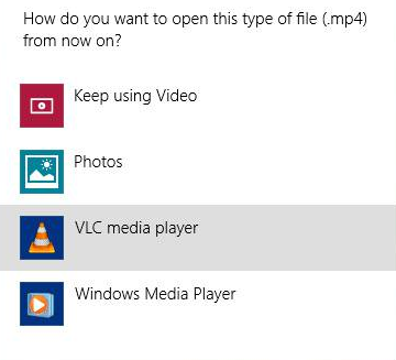Первый способ доступен автоматически сразу после установки нового приложения или программы, которая способна работать с файлами определенных типов. Например: VLC Media Player, совместимый с самым разным видео. Однако, несмотря на установку нового проигрывателя, видеофайлы будут, по прежнему, воспроизводится в приложении, выбранном “по умолчанию” операционной системой, а именно - Xbox Video. Так как в системе установлено новое приложение для работы с файлами такого типа, “восьмерка” уведомит пользователю, что такие файлы могут быть открыты и другим приложением. При нажатии на это сообщение откроется Metro-интерфейс, в котором можно мгновенно изменить ассоциации для выбранных файлов.