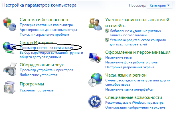После этого откроется окно «Центр управления сетями и общим доступом»