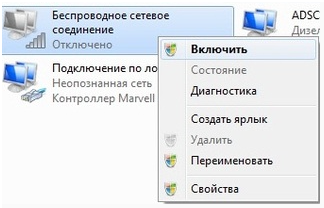Вам откроется список устройств. Нужно включить "Беспроводное сетевое соединение"