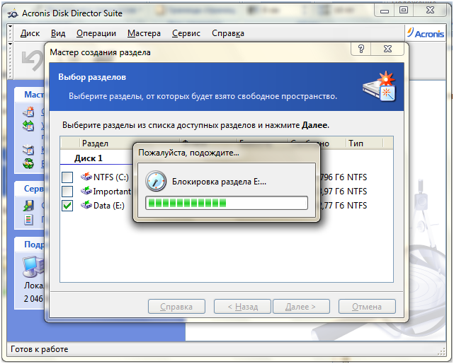 В ходе этого процесса Acronis заблокирует разделы (диски). В таком состоянии нельзя менять файлы и содержание папок.