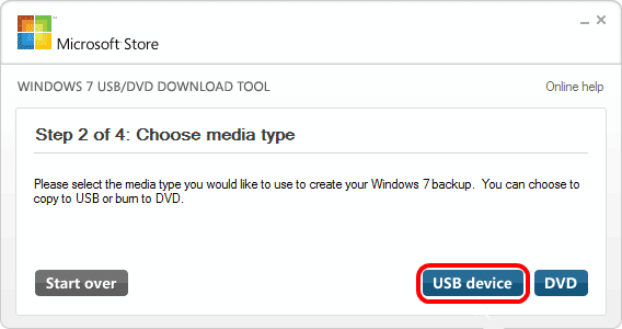 1. Запустите «Windows USB/DVD Download tool»;